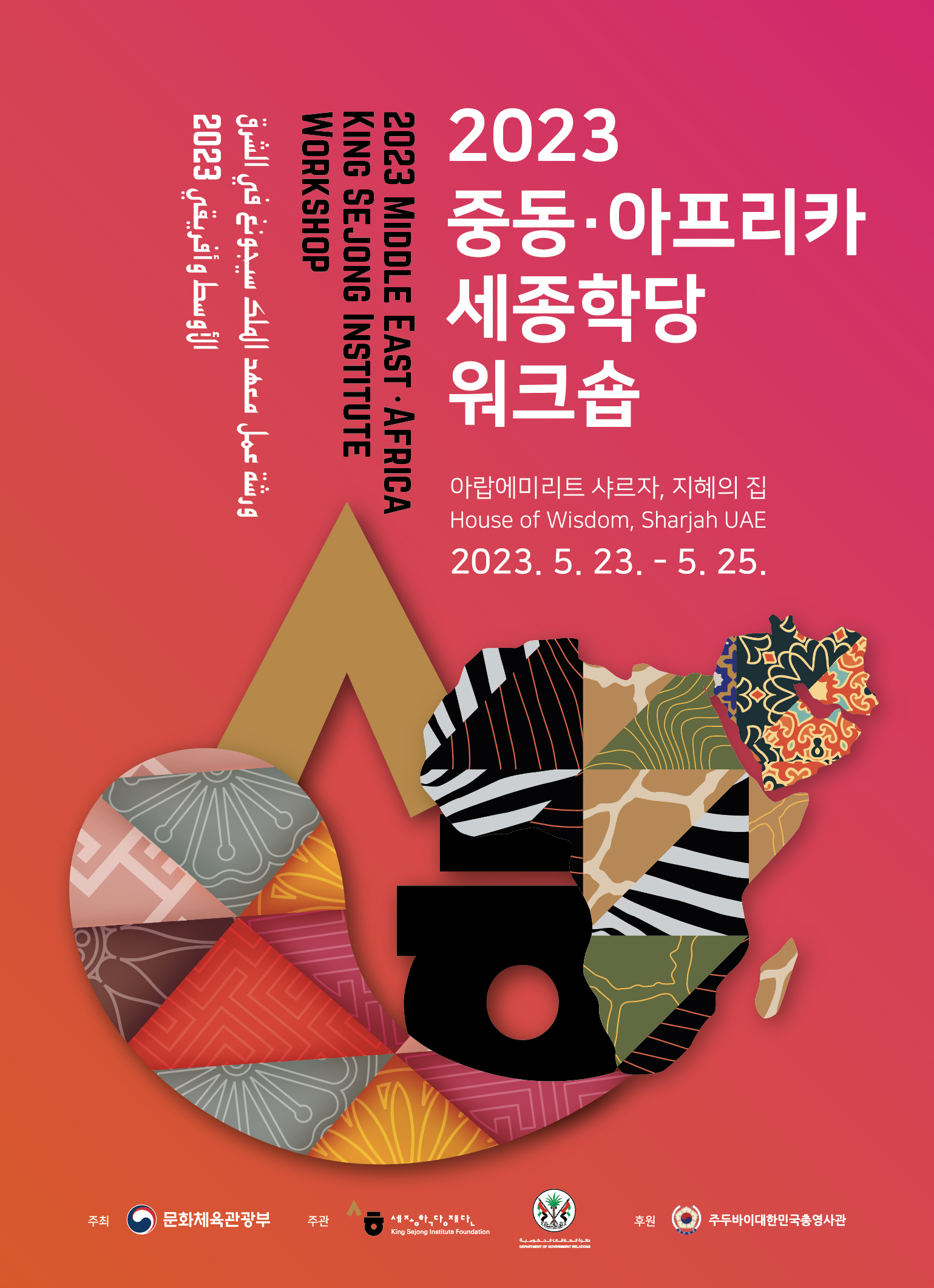 문화체육관광부(장관 박보균, 이하 문체부)는 세종학당재단(이사장 이해영, 이하 재단)과 함께 5월 23일(화)부터 25일(목)까지 아랍에미리트 샤르자 지혜의 집(House of Wisdom)에서 ‘2023 중동·아프리카 세종학당 워크숍’을 개최한다. 이는 지난 1월 윤석열 대통령의 아랍에미리트 순방을 계기로 출범한 문체부 ‘제2의 중동 붐 TF’를 통해 논의된 후속 조치의 일환이다.
