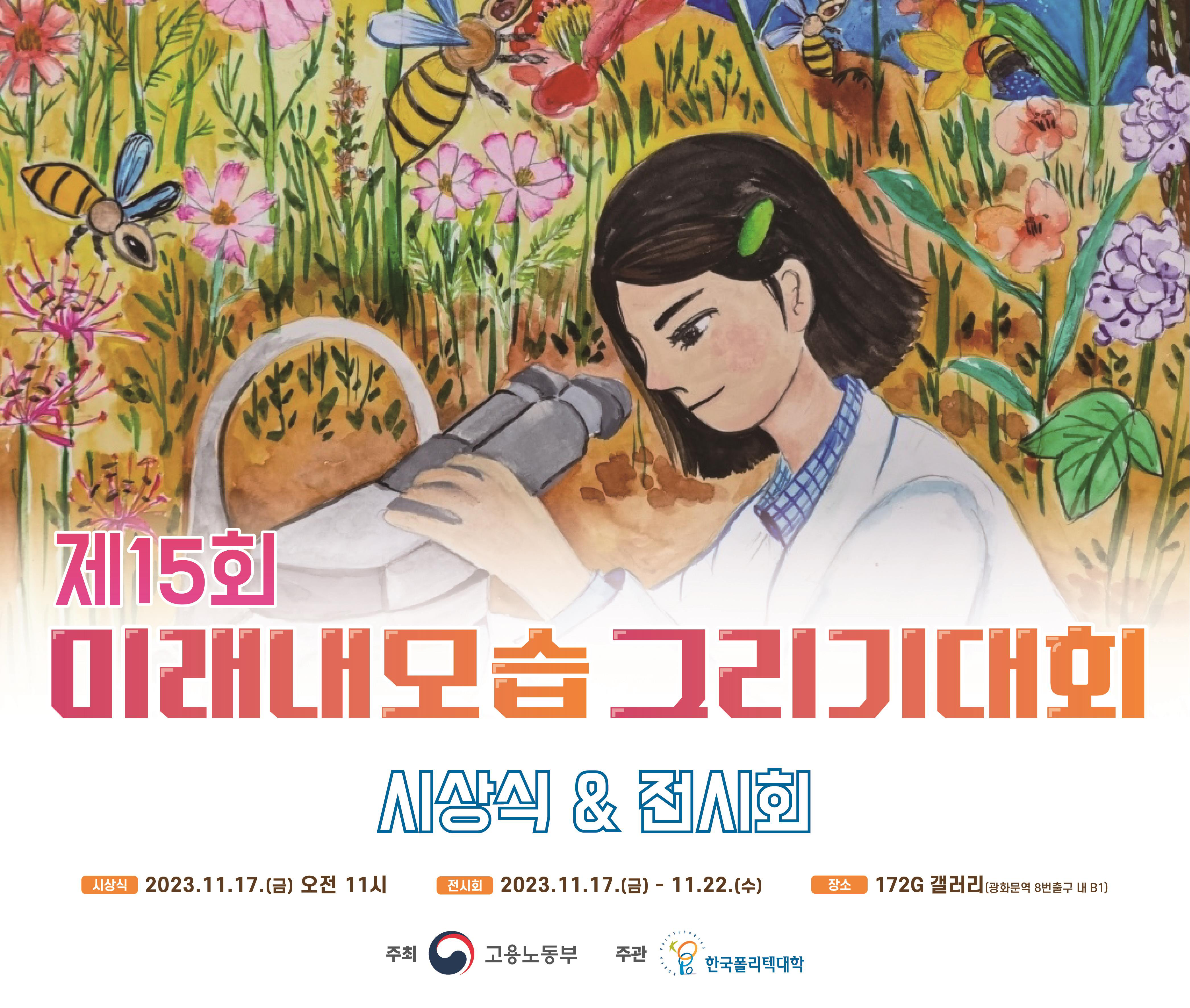 미래내모습그리기대회는 어린이와 청소년에게 진로 탐색 기회를 제공하고 다양한 직업 세계를 이해하도록 돕기 위한 행사다. 고용노동부와 폴리텍이 2009년부터 매해 열고 있다. 올해에는 1만1989명이 참가해 역대 참가자가 18만3000여 명에 이른다. 15회째를 맞이한 만큼, 역대 참가자들의 작품을 통해 산업의 변화와 시대 흐름을 엿볼 수 있는 국내 대표 직업 그림대회로 자리 잡았다.
