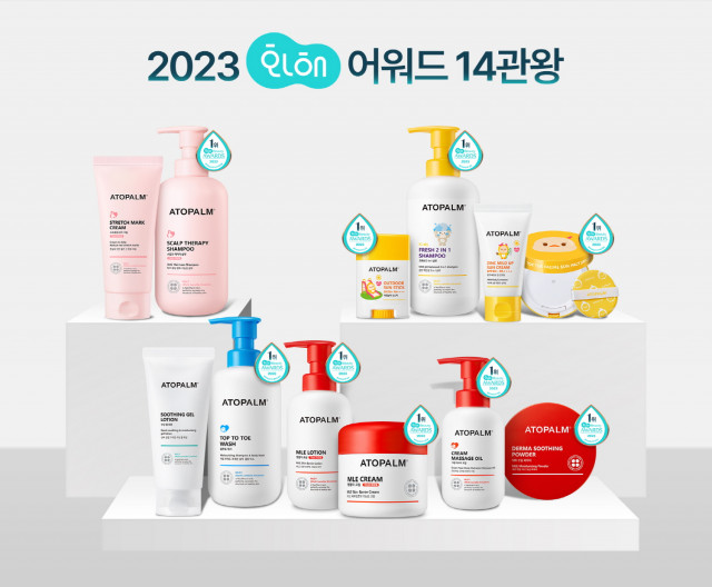 네오팜(대표 김양수)의 민감 피부 전문 스킨케어 브랜드 ‘아토팜(ATOPALM)’이 ‘2023 화해 어워드’에서 무려 14관왕을 달성하는 쾌거를 이뤘다고 밝혔다. 전년도에 비해 두 배 이상의 성과다.